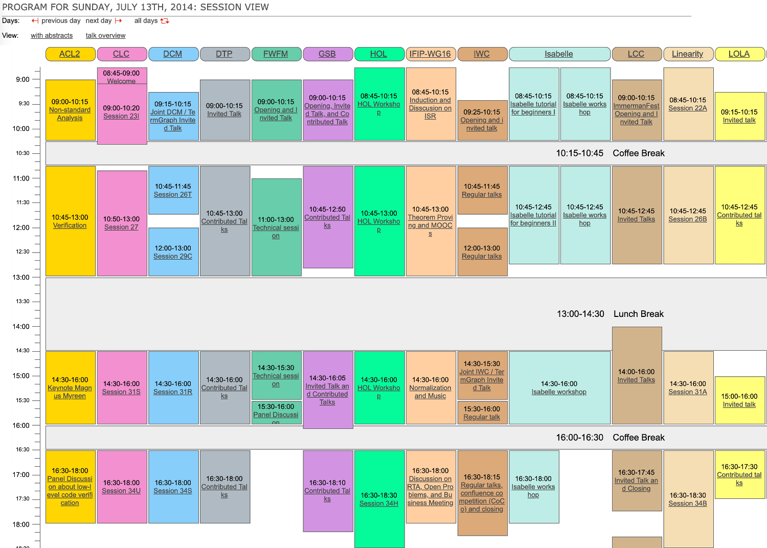 Have you ever run a conference? If yes, then have you ever tried to generate good quality conference pages including the conference program? Creating pages and a program for a tiny conference (say, 20 presentations), already creates a challenging amount of work. Creating them for a small to medium size conference (say, 25 to 100 presentations), is very hard and time-consuming. Creating them for a large conference, with parallel sessions and collocated conferences and workshops, can easily take several man-months or even man-years of work, normally resulting in poor quality content and inconsistent, out-of-date, difficult to modify information.